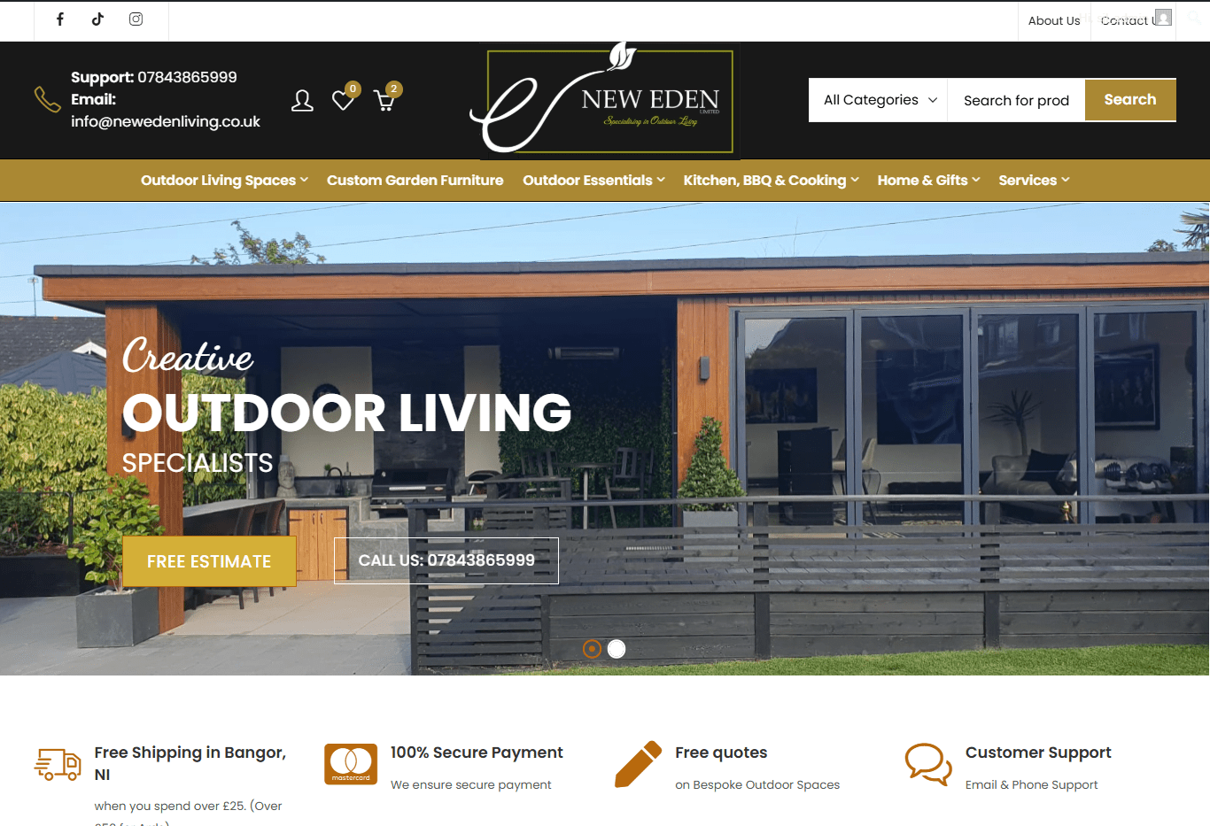 SJL Digital Marketing recently designed a visually stunning and highly functional website for New Eden Living, outdoor living specialists in Northern Ireland. The goal was to create a modern, engaging, and user-friendly platform that showcases the company’s expertise in outdoor transformations, including fencing, decking, and garden structures. The new website, newedenliving.co.uk, features a clean, image-rich design that highlights completed projects and inspires potential clients. The intuitive navigation ensures visitors can easily explore services, browse project galleries, and request a consultation.